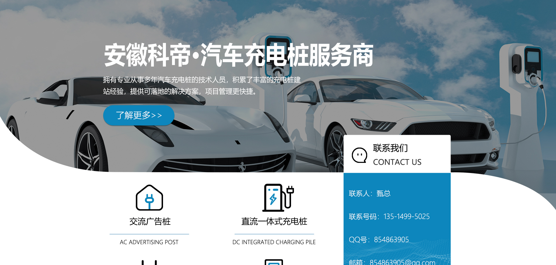 安徽科帝新能源科技有限公司坐落于安徽省會(huì)-合肥,是一家研發(fā)、生產(chǎn)智能充電樁設(shè)備,汽車充電站后臺(tái)監(jiān)控管理系統(tǒng)和生產(chǎn)高壓開關(guān)設(shè)備的企業(yè).由專門的研發(fā)團(tuán)隊(duì)、管理團(tuán)隊(duì)按照現(xiàn)代化企業(yè)制度規(guī)范設(shè)立的有限責(zé)任公司。致力于為能源智能、安全的應(yīng)用和節(jié)能減排提供整體的技術(shù)與產(chǎn)品解決方案。科帝集研發(fā)、設(shè)計(jì)、生產(chǎn)、銷售以及服務(wù)于一體,在電動(dòng)汽車充電方案,充電設(shè)施建設(shè)和城市配電方面擁有廣泛的技術(shù)研究及經(jīng)驗(yàn)積累,為客戶提供安全、智能的充電設(shè)備及充電運(yùn)營(yíng)站建設(shè)一體化解決方案。并堅(jiān)持以人為本、質(zhì)量為先、顧客至上、不斷創(chuàng)新”的企業(yè)理念,為能源行業(yè)的發(fā)展、節(jié)能減排做出重大的貢獻(xiàn)。公司擁有豐富的產(chǎn)品種類,目前科帝已研發(fā)生產(chǎn)了三十多種產(chǎn)品,充電設(shè)備有直流一體式充電樁、直流分體式充電樁、直流廣告樁、交流廣告樁、廣告一體樁、壁掛交直流樁;等多種充電設(shè)備;每一款產(chǎn)品都是精心打造,力求為客戶提供優(yōu)越的用戶體驗(yàn)。展望未來科帝將通過持續(xù)的自...